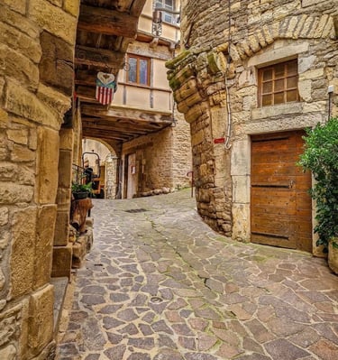 La maison est située dans une rue sans issue dans la cité médiévale à deux minutes à pied des jolies boutiques artisanales et des restaurants.
